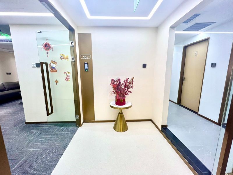 公共装修部分采用高级石材地面、墙面及艺术吊顶,配以豪华灯饰,简洁明快,现代商务感十足。